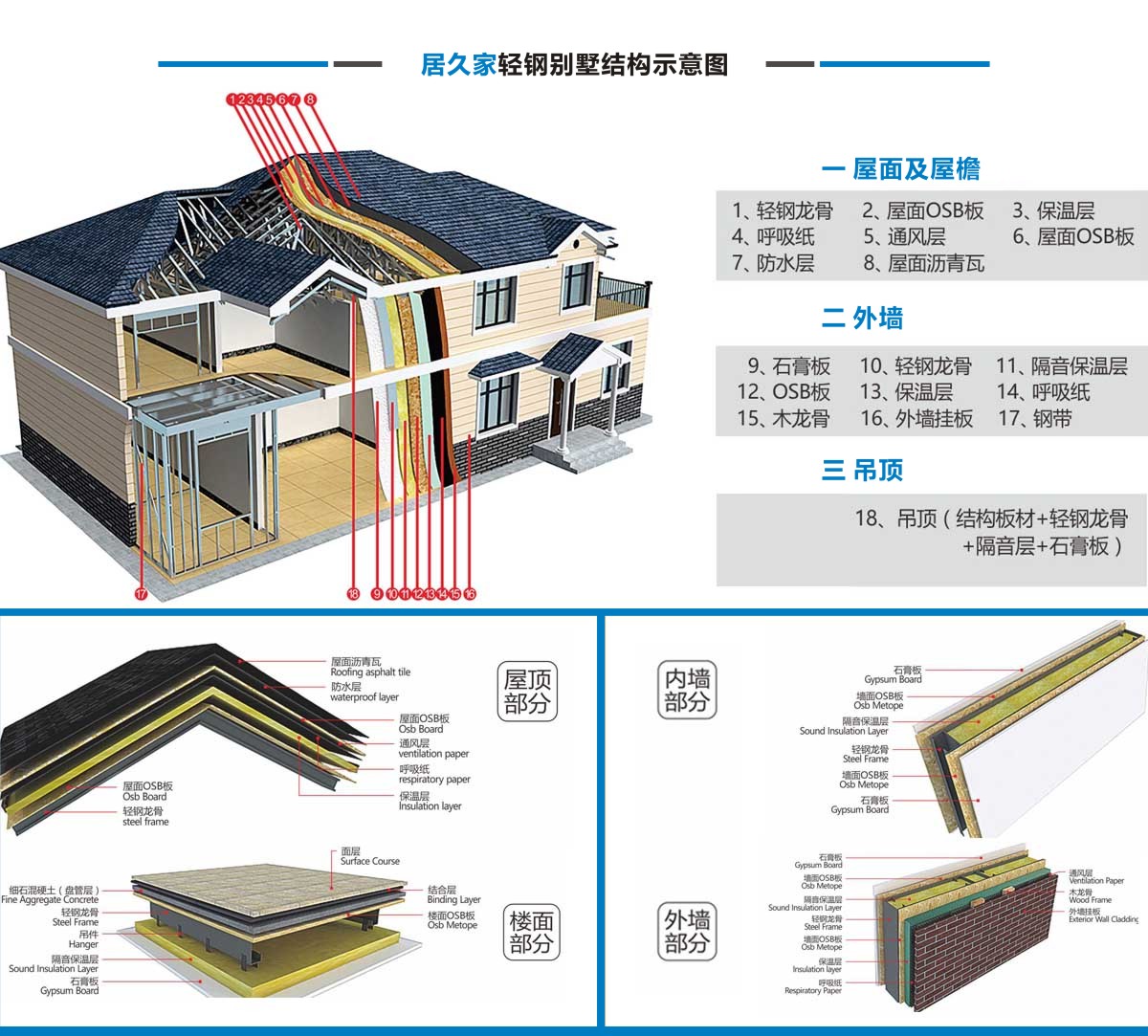 居久家房屋輕鋼別墅體系,保溫隔熱、冬暖夏涼。